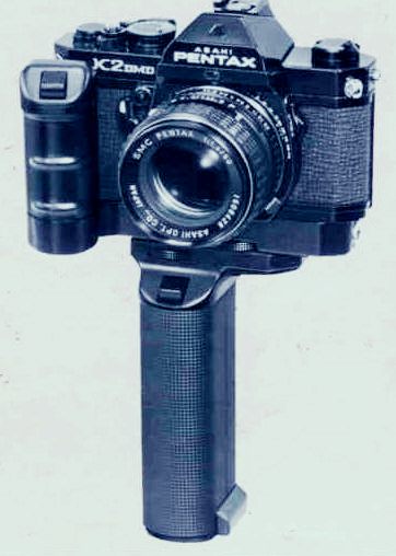 K2 DMD는 K2 모델에 DMD(Data Motor Driver)를 부착할 수 있는 모델인데 요즘의 세로 그립처럼 아랫부분에 모터를 장착해서 날짜를 기록하는 장치를 부착할 수 있는 기종.