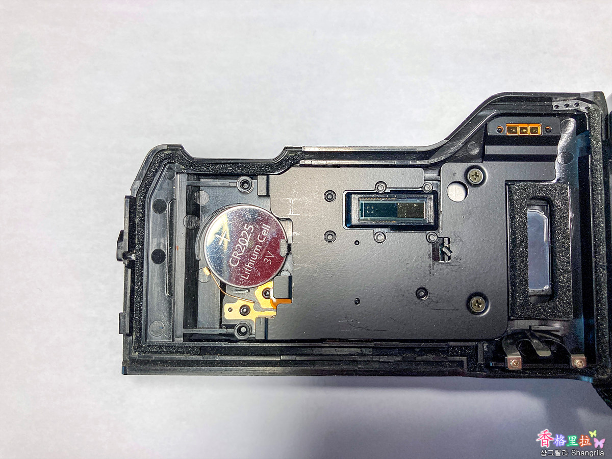 배터리 CR2025 교체. 그런데 가만히 보니 필름 누름판을 고정하는 고리(?)가 심하게 훼손되었다.