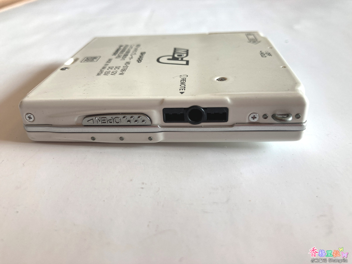 Sharp MD(Mini Disc) ST66 옆면에 Cover를 여는 Open 스위치와 리모컨을 삽입할 수 있는 구멍이 있다.