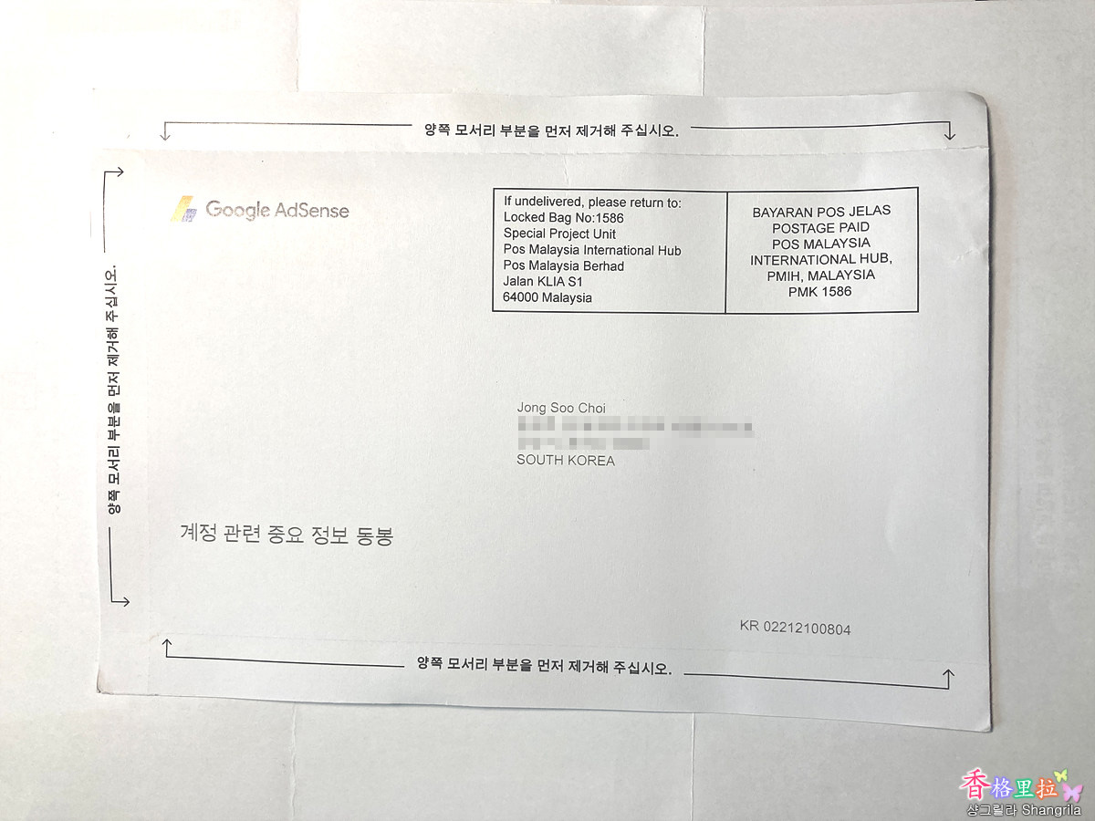 구글 애드센스 핀코드가 우편물로 도착했다. 2021.2.21에 핀코드를 보냈다는 메일 받았는데 2주 만에 배달된 것이다.