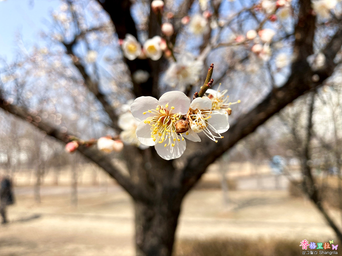 안산 호수공원에 유일하게 한그루 있는 홍매화.