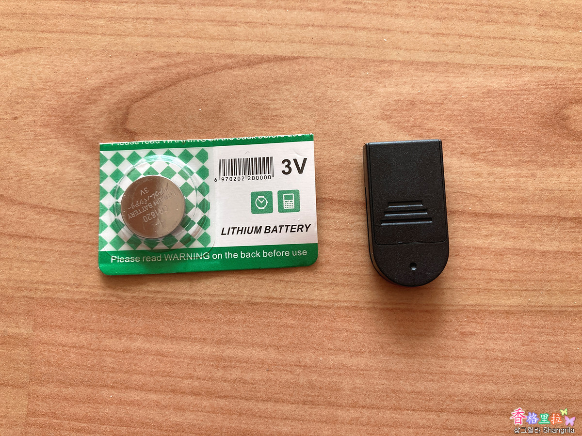 상자 안에 덜그럭 거리는 소리가 나서 꺼내보니 3V Lithium Battery CR-1620 이 부속품으로 들어 있었다.