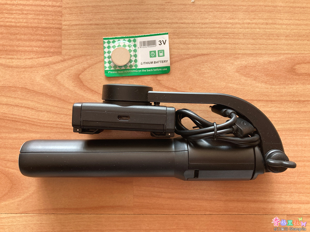 Nutz NZ-01 짐벌 Unit에 USB 충전 포트가 보이고 USB 충전 케이블이 들어있다. 배터리 유지 시간이 3시간 정도 되는 것 같은데 너무 조루인 것 같다. 여행을 하면서 3시간 이상 촬영을 할 경우가 많은데... 아쉽다.