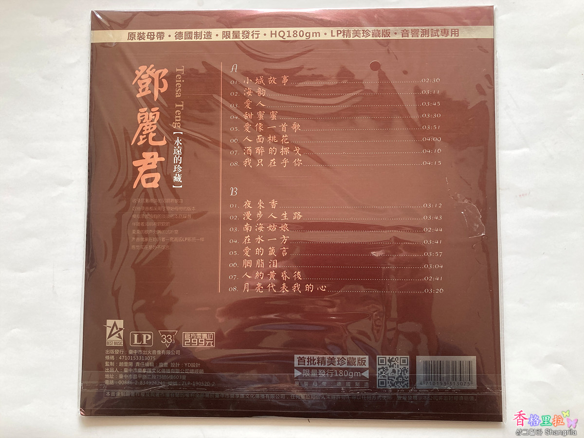 첨밀밀(添蜜蜜) 월량대표아적심(月亮代表我的心)등으로 유명한 대만의 가수 등리진(登麗君) LP 2장을 중국 직구를 대행하는 업체를 통해 지난 2021년 3월5일에 주문했다.