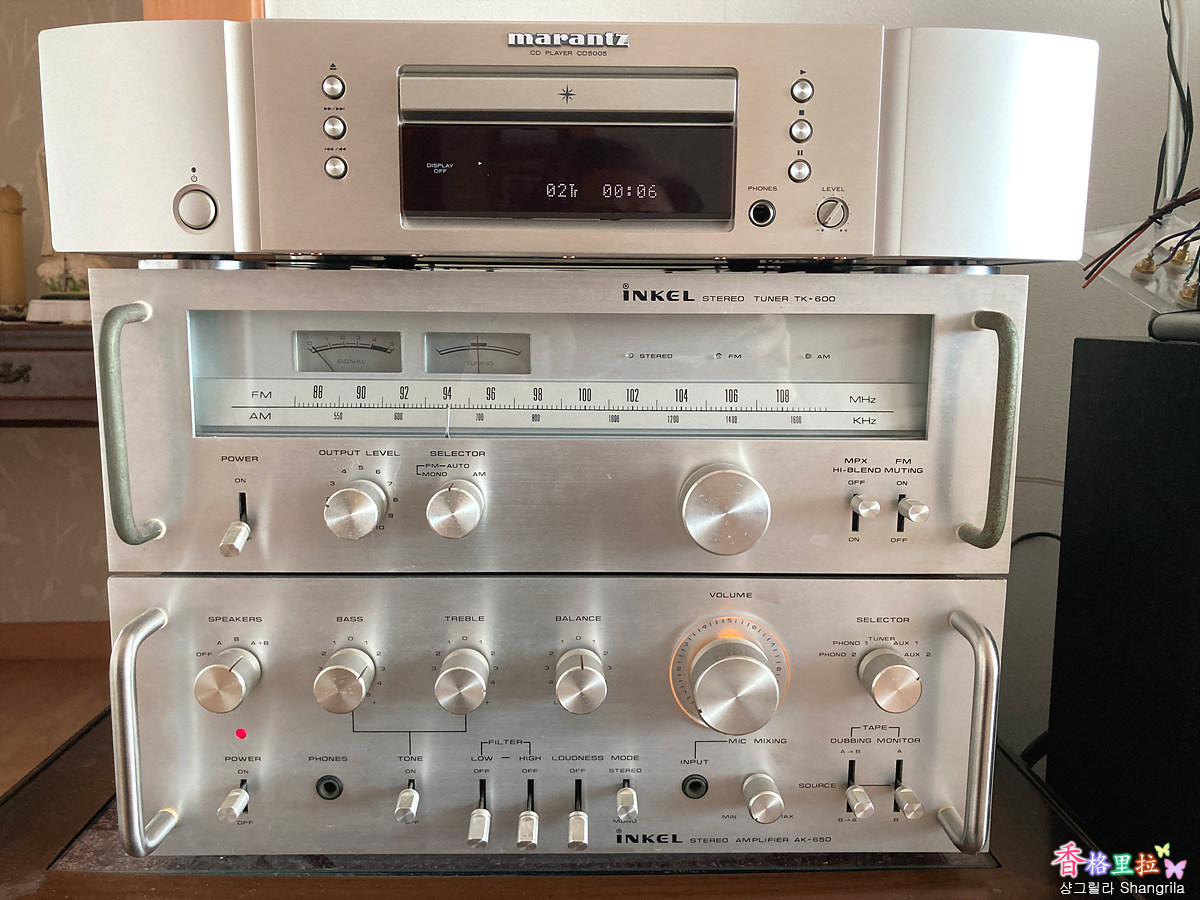 전원을 연결하고 출력(Ouput) 단자에 RCA Cable을 꽂고 Inkel AK-650 AMP의 AUX 단자와 연결해 주면 끝이다.