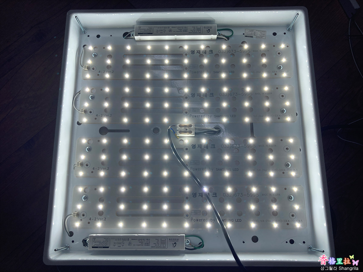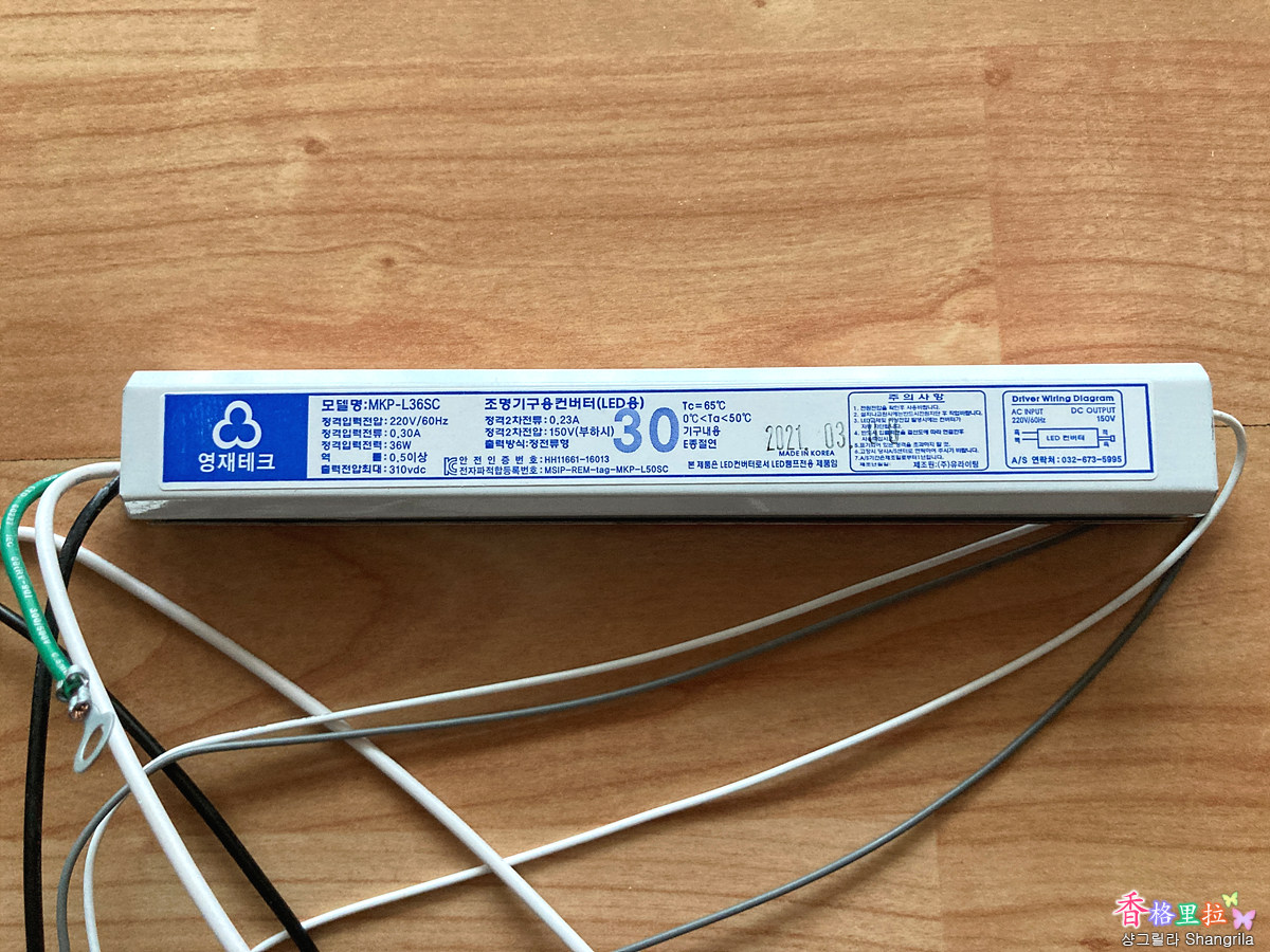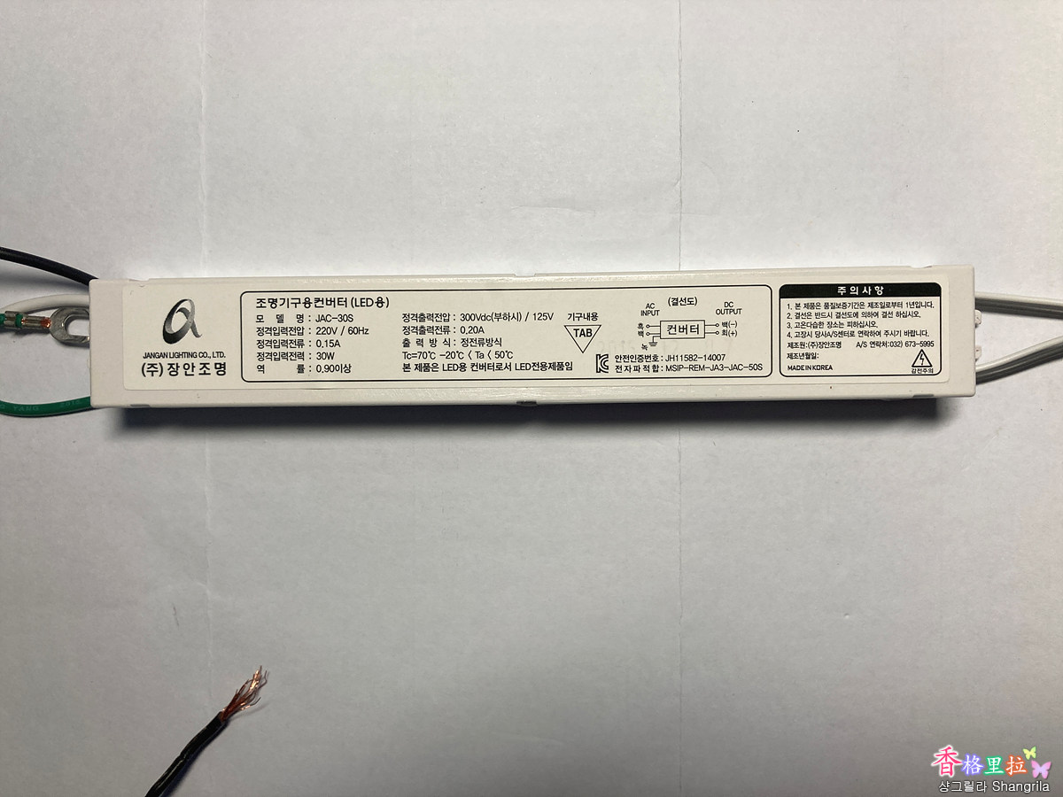 컨버터를 교체하려고 유리커버를 열어보니 아뿔싸~ 작은방의 등기구는 부엌의 등기구 제조 회사와는 다른 회사인 장안조명이라는 회사의 LED 등기구이다.