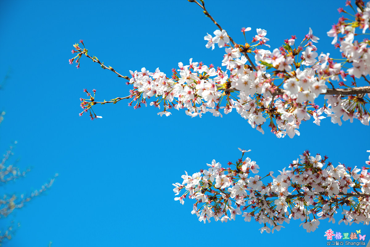 노란 개나리꽃, 하얀 벚꽃, 파란 하늘이 잘 어울리는 봄날이다.