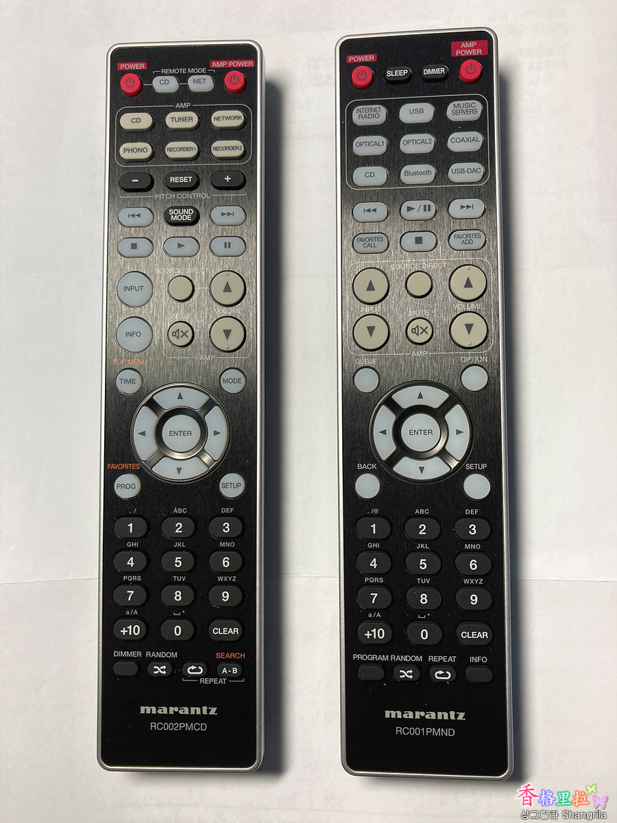 왼쪽이 CD-5005용 리모컨 RC002PMCD, 오른쪽이 PM-8006용 RC001PMND인데 CD-5005를 구입 안 했으면 PM-8006 리모컨은 거의 무용지물인 리모컨이다.