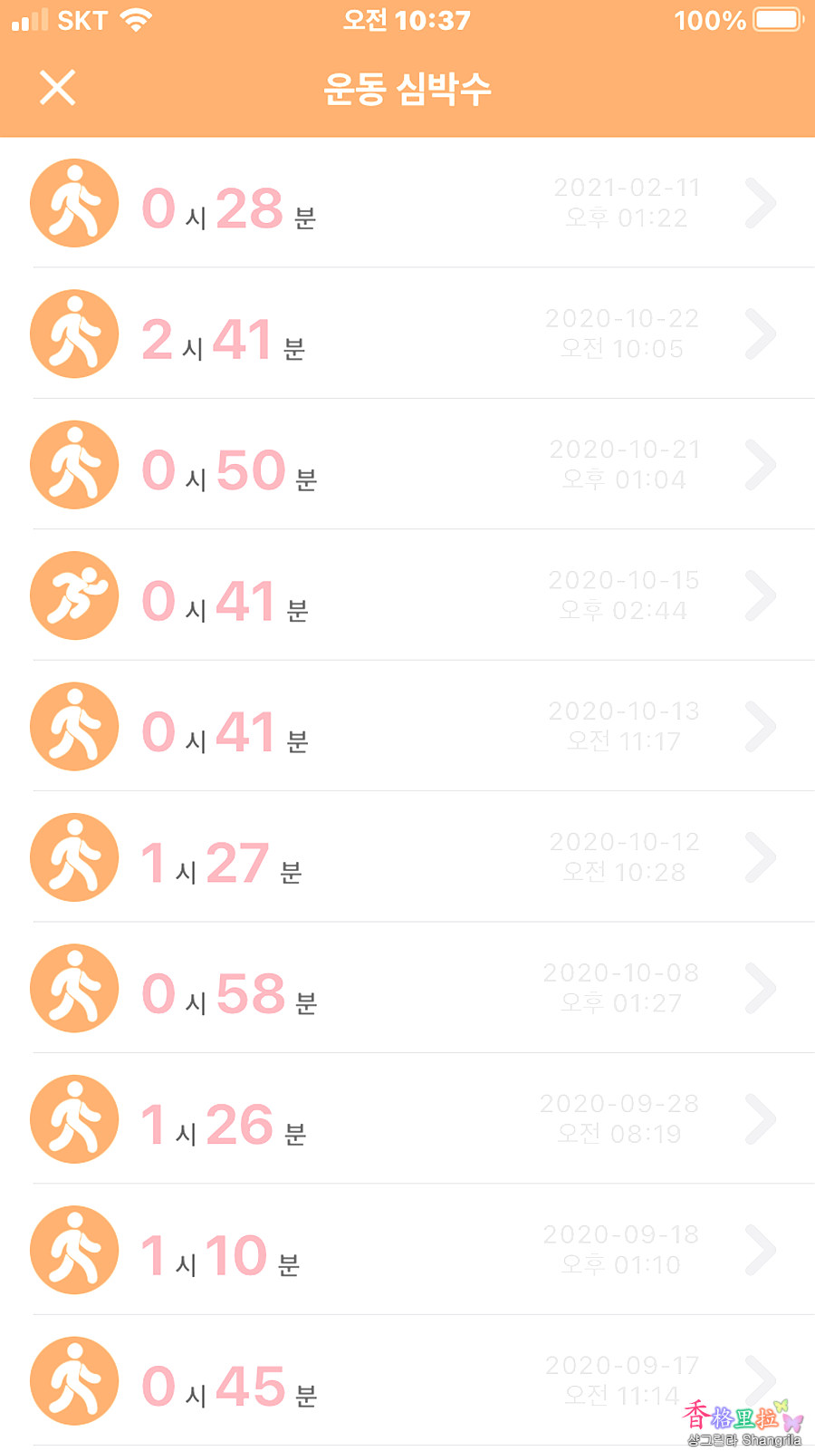 맨 아래에 있는 더 많은 기록 보기를 누르면 그동안의 운동시간 기록이 나오는데 살 당시에는 매일 차고 다녔지만 최근에는 이걸 차고 다니지 않아서 기록이 없다.