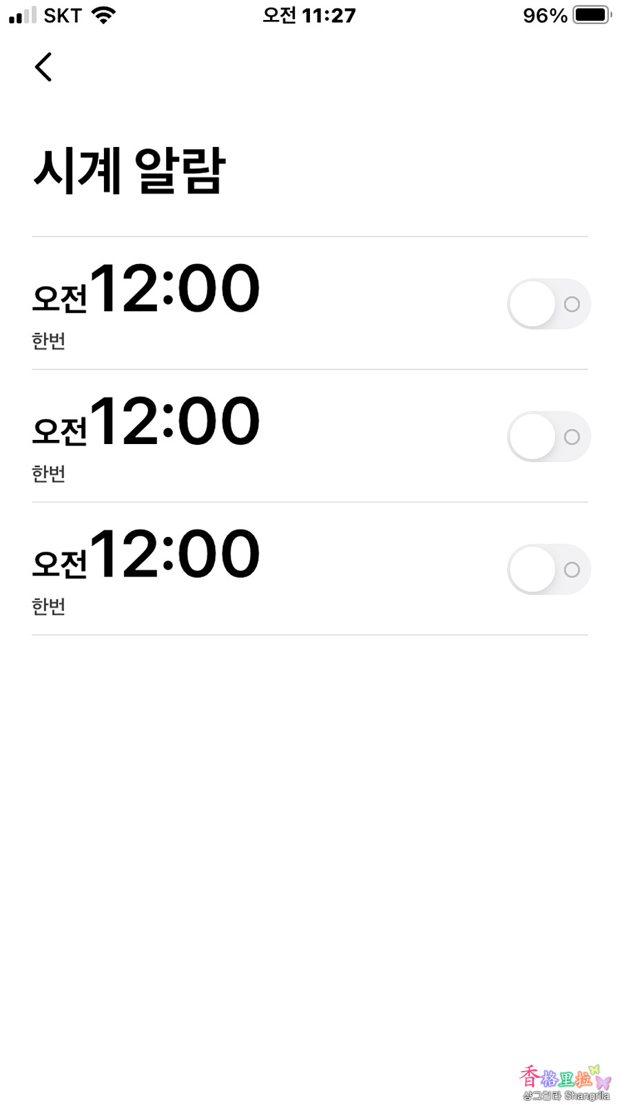 시계 알람을 선택하면 3개의 알람을 설정할 수 있다.