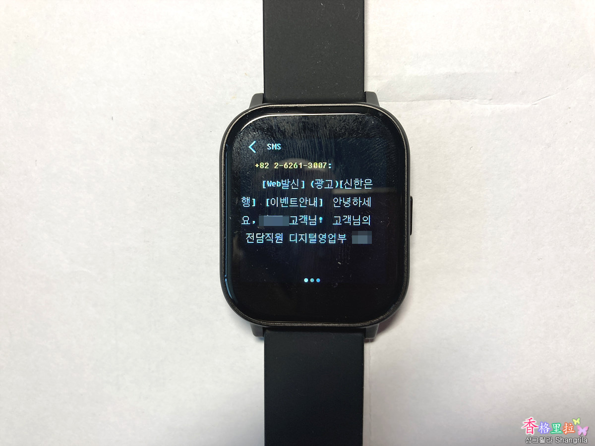문자는 메시지와 카톡 등을 수신할 수 있도록 설정 가능하다. 그런데 글씨가 너무 작아서 노안인 내 나이에는 꼭 안경을 써야 되니 불편할 뿐이고 스마트폰을 확인하면 되는 거라 그다지이다. 스마트폰을 수시로 확인할 수 없는 사람에게는 도움이 될 것 같다.