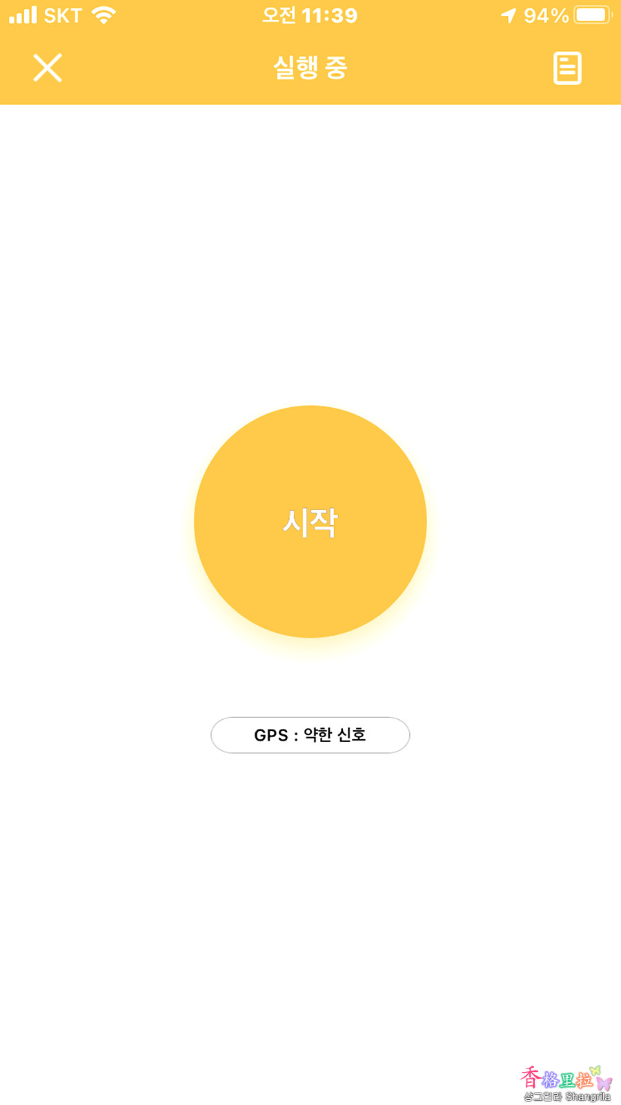 GPS운동을 켜면 시작이라는 버튼이 나오는데 이걸 누르고 걷기나 달리기를 하면 지도에 트랙이 표시되는데 결과는 그리 신뢰할 수준이 못된다.