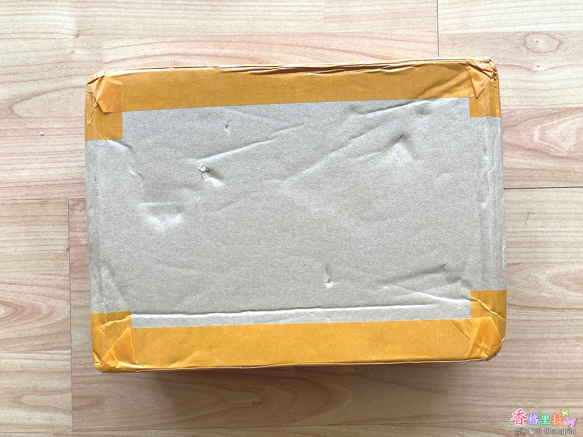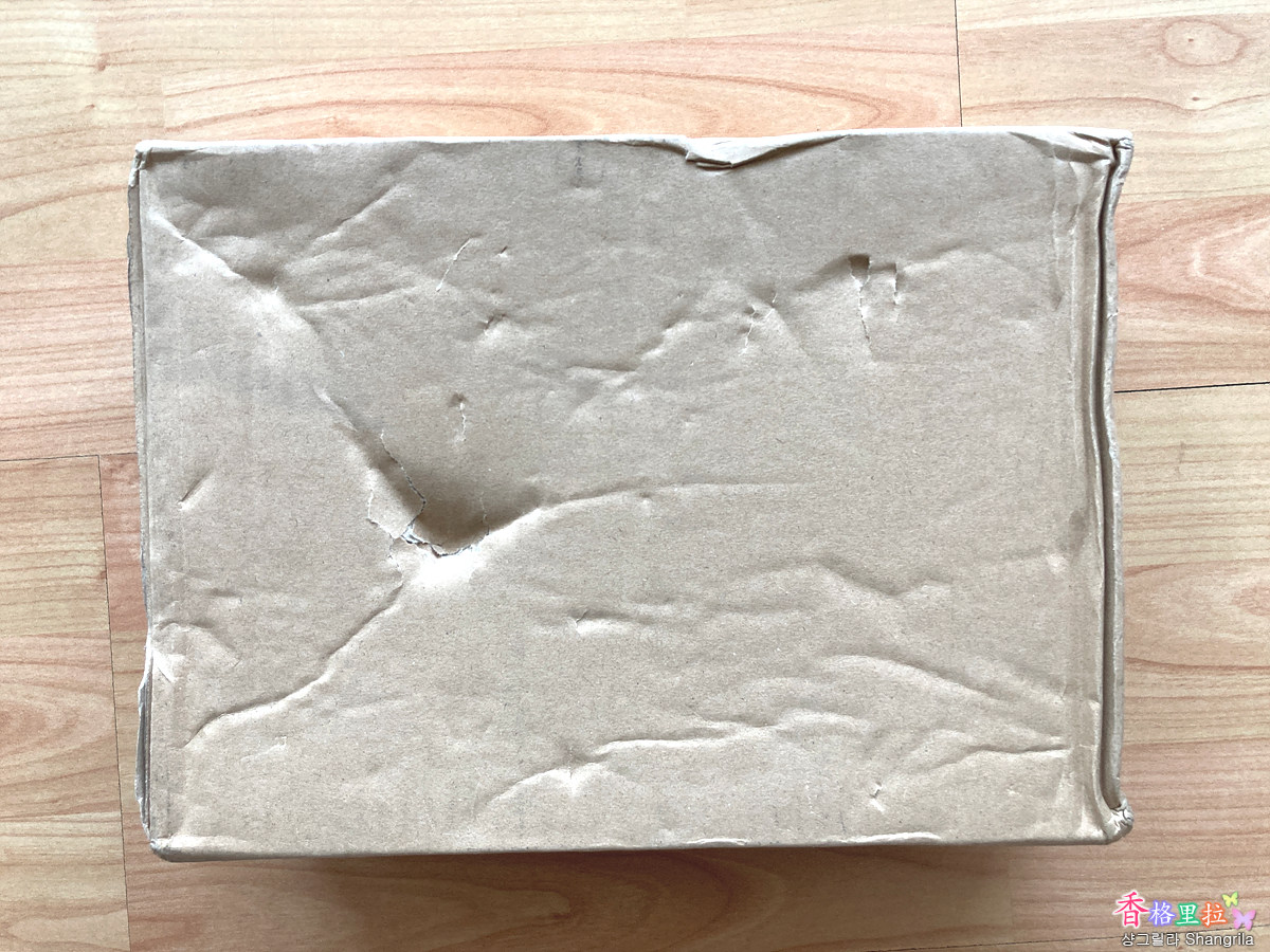 비닐 포장을 뜯으니 종이 박스가 나온다. 그래도 제품 포장 박스를 따로 사용했네 하며 뒤집어보니 이런~ 박스가 무언가에 찍혀서 움푹 들어갔다.