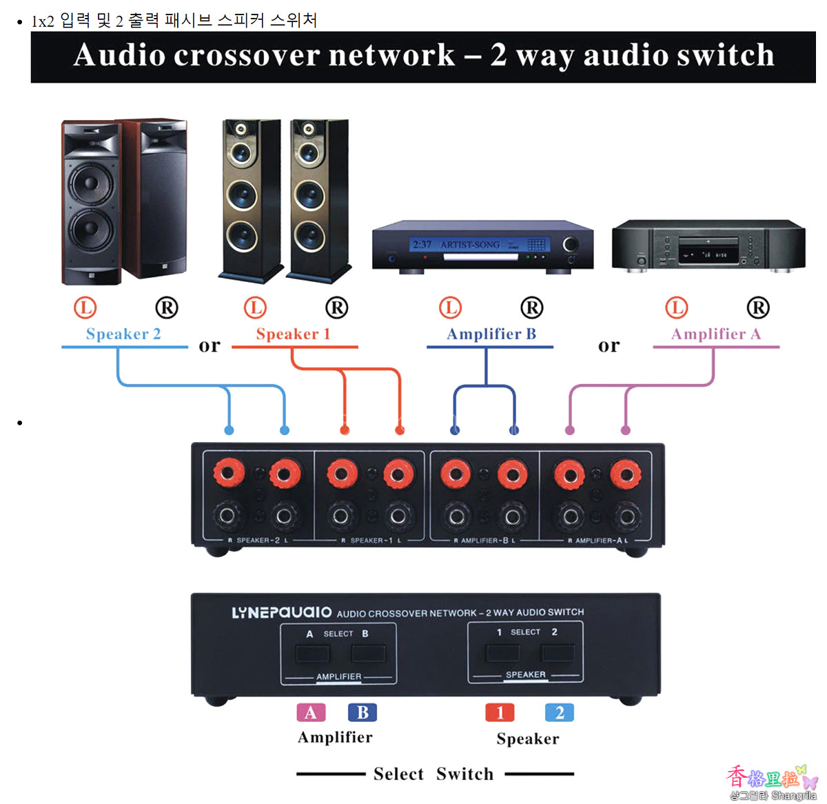 1x2 입력 및 2 출력 패시브 스피커 스위치라는 작은 제목이 맞는 제목이라는 생각이 든다.