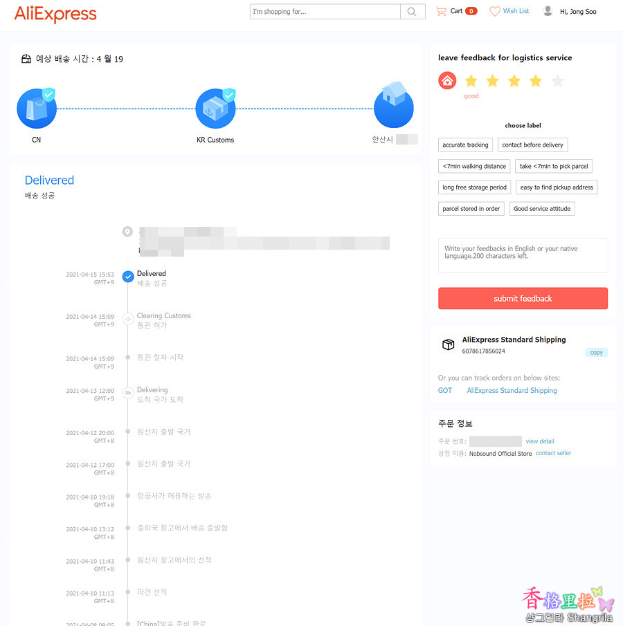 2021.4.9에 주문, 2021.4.15에 도착했으므로 6일 걸렸다. 이 정도면 상당히 빠른 편이다.