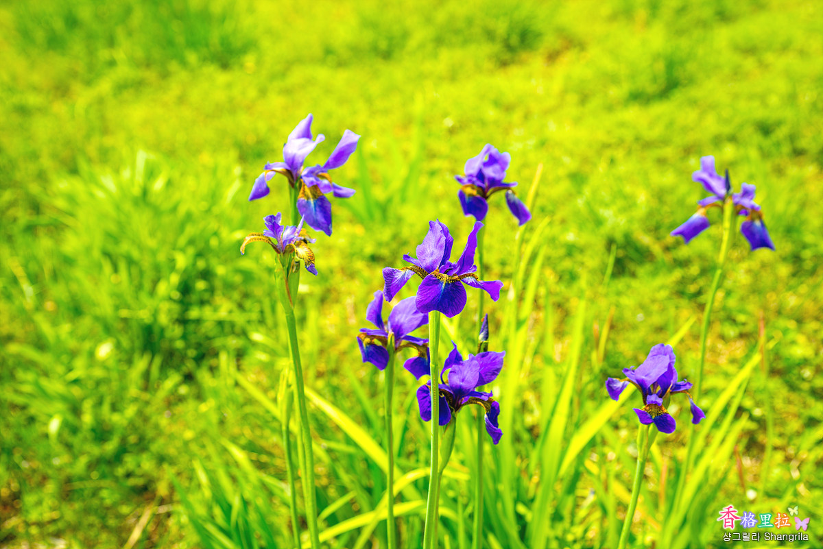 한쪽 귀퉁이에 붓꽃이 보라색을 뽐낸다.