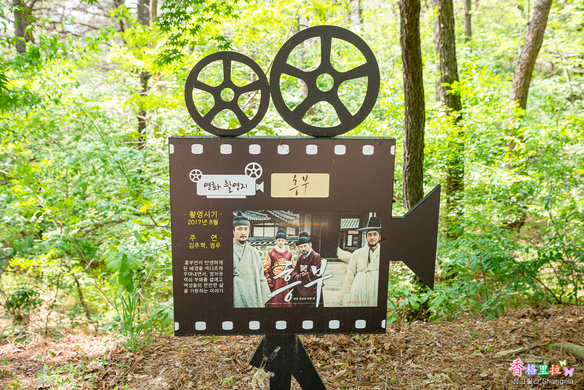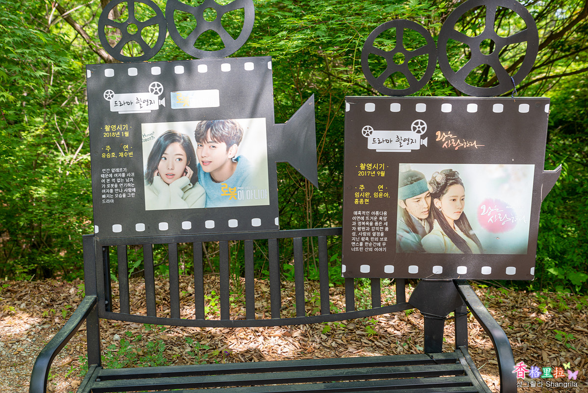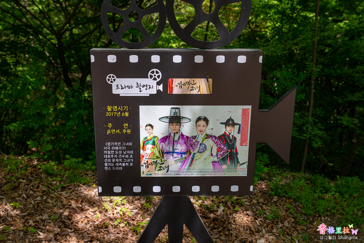 주차장 한쪽에 있는 계단을 올라 포장도로를 조금 올라가면 조그마한 공터가 나오고 올라가는 길 주변에 이곳에서 촬영한 드라마와 영화를 소개하는 안내판이 줄줄이 서 있다.