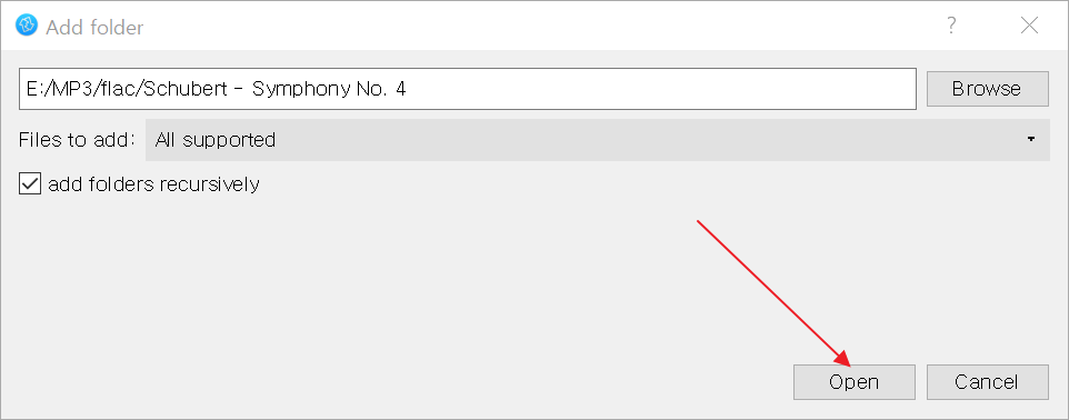 위와 같이 Add folder 가 나오는데 Open을 클릭한다.