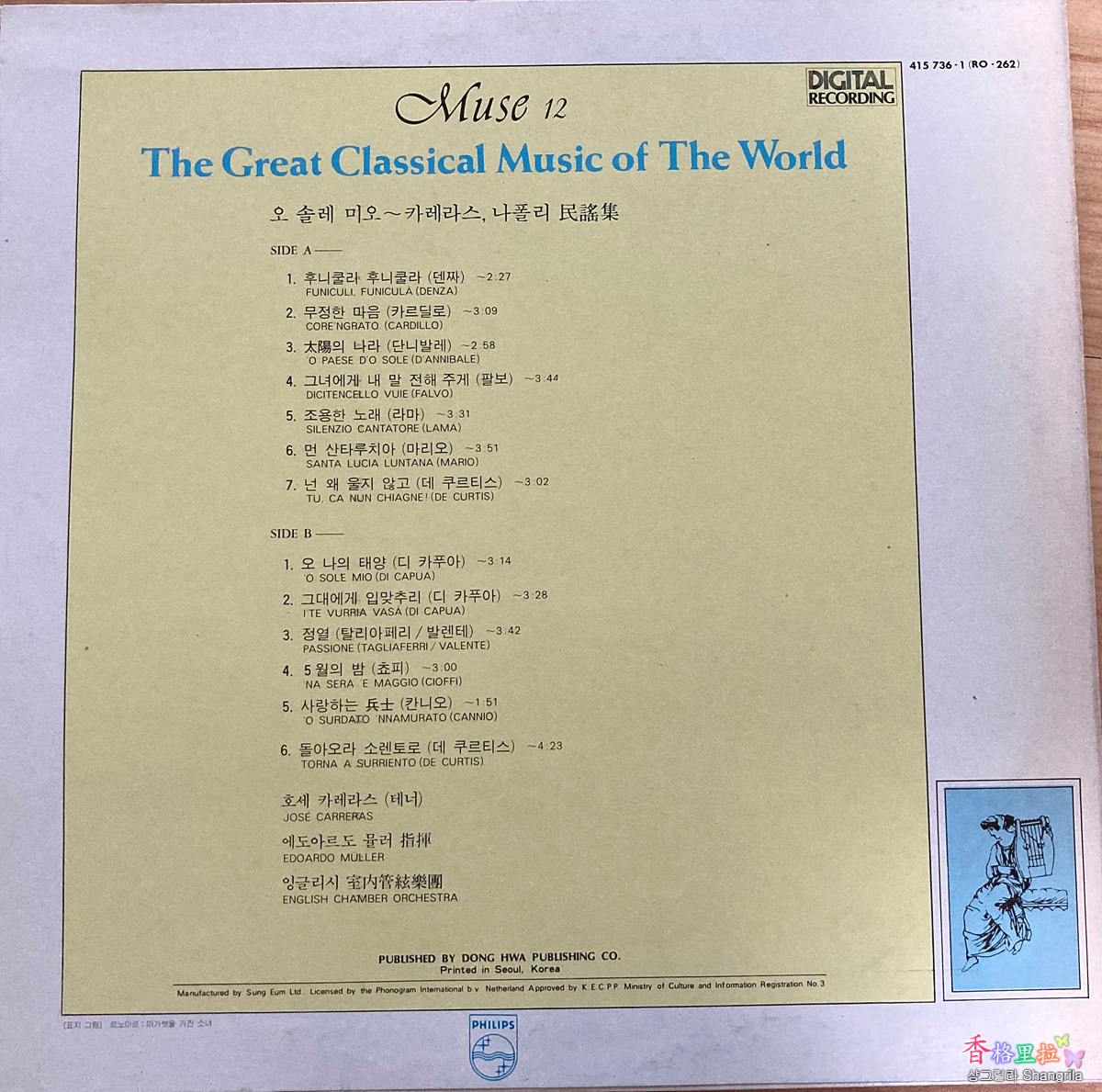 우리 귀에 익숙한 오 솔레미오(O Sole Mio)등 칸초네 음악들이 수록되어 있다.