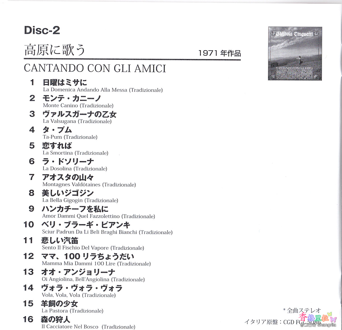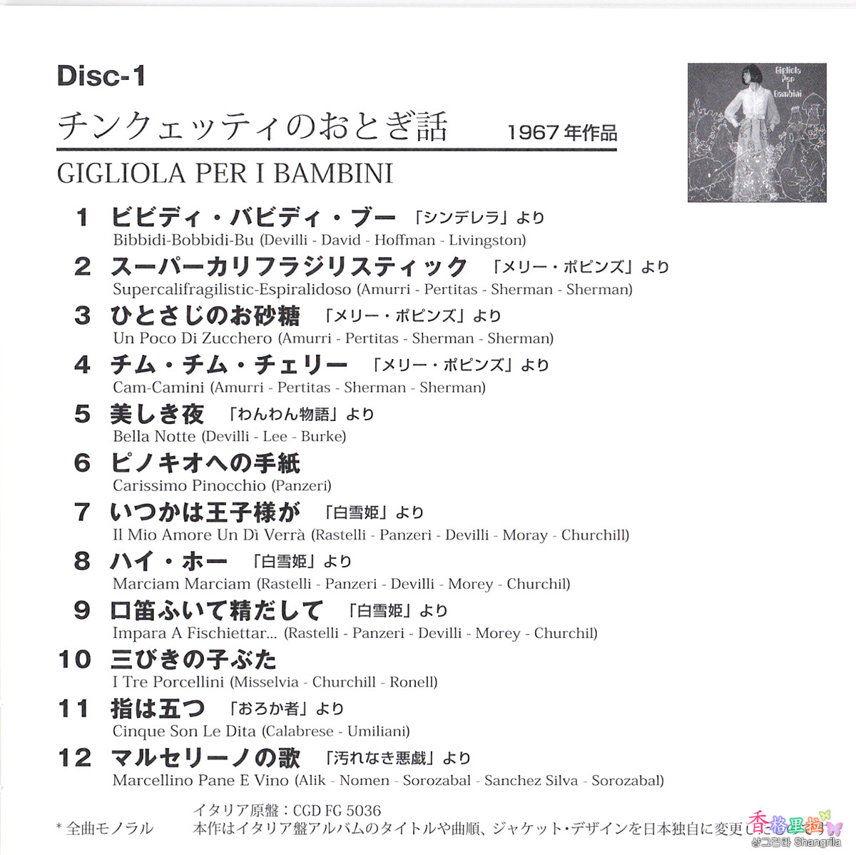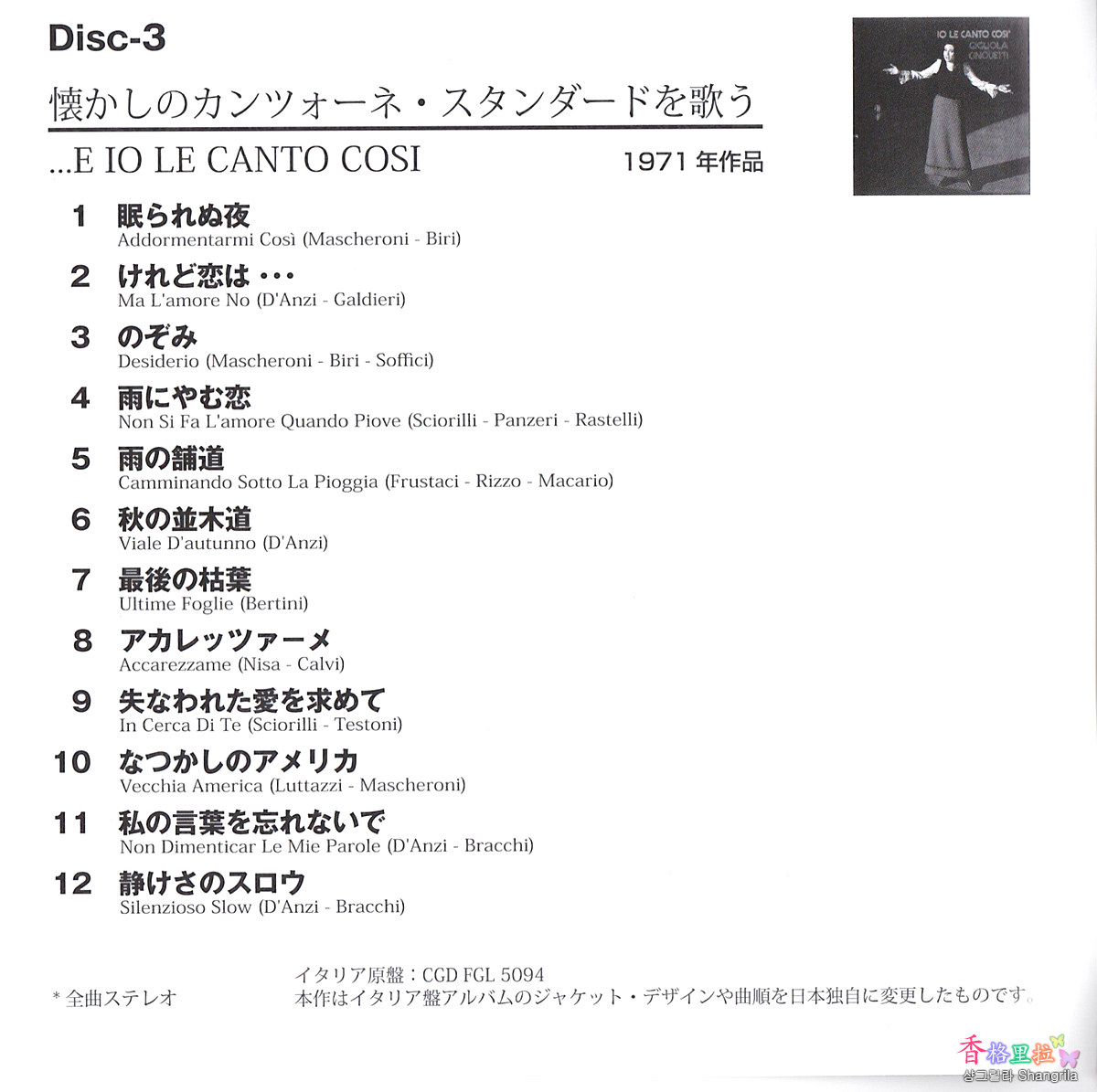 ▲질리올라 친케티 (Giliola Cinquetti) CD 1 목록 1967년작