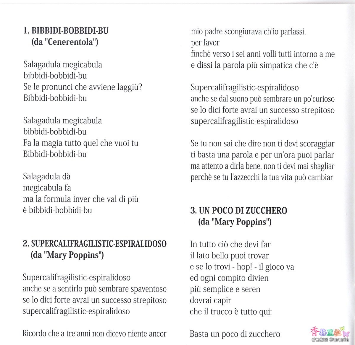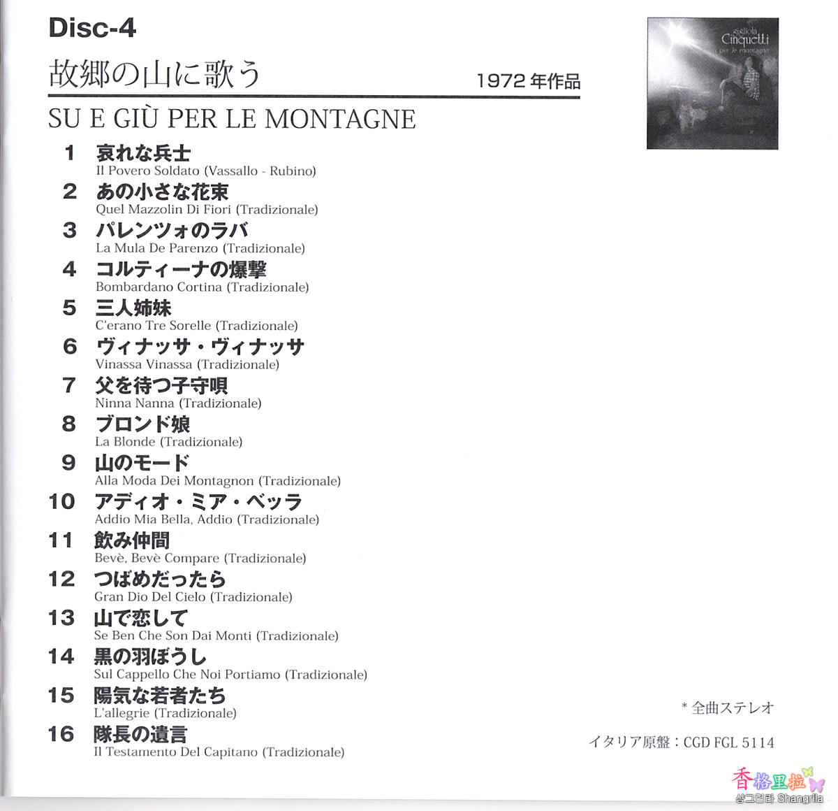 다행히 이탈리어와 일어 두 언어로된 가사집이 있어서 읽기 힘든 일본어를 Pass 해서 좋다.
