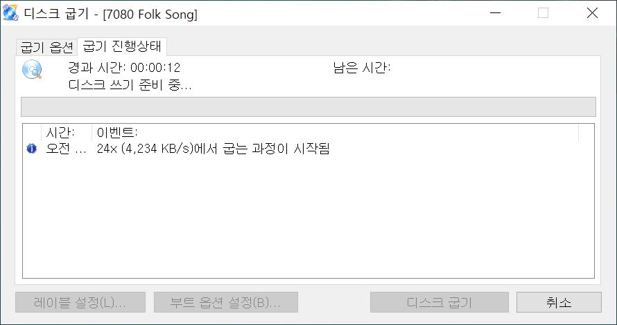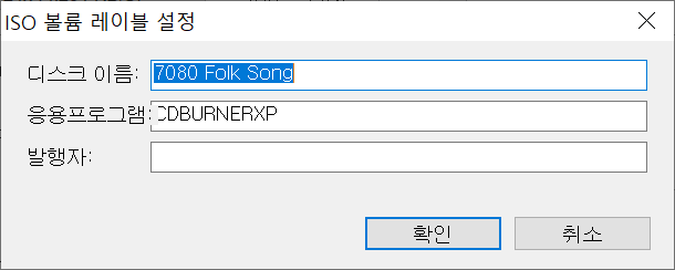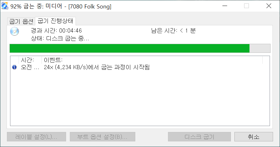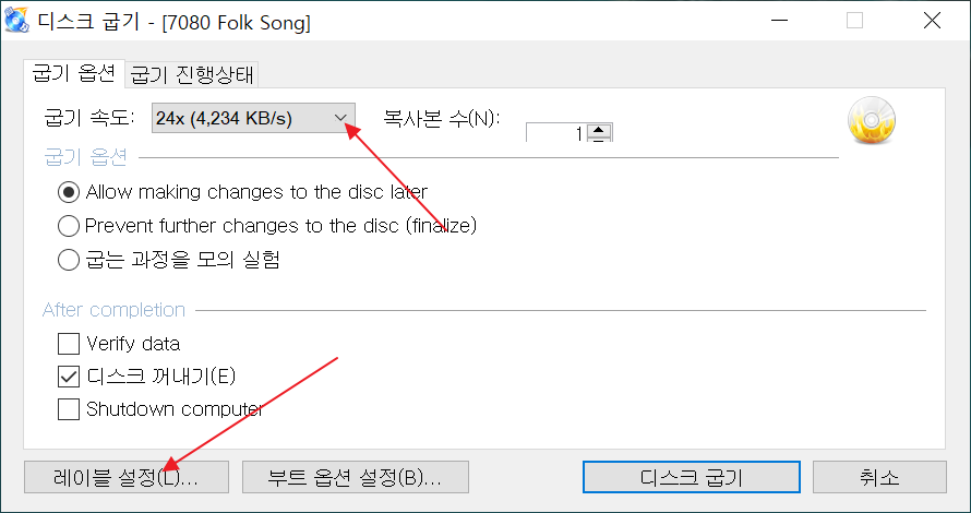 레이블 설정을 눌러 CD의 레이블(이름)을 지정할 수 있다. 지정 안 해도 상관없다.