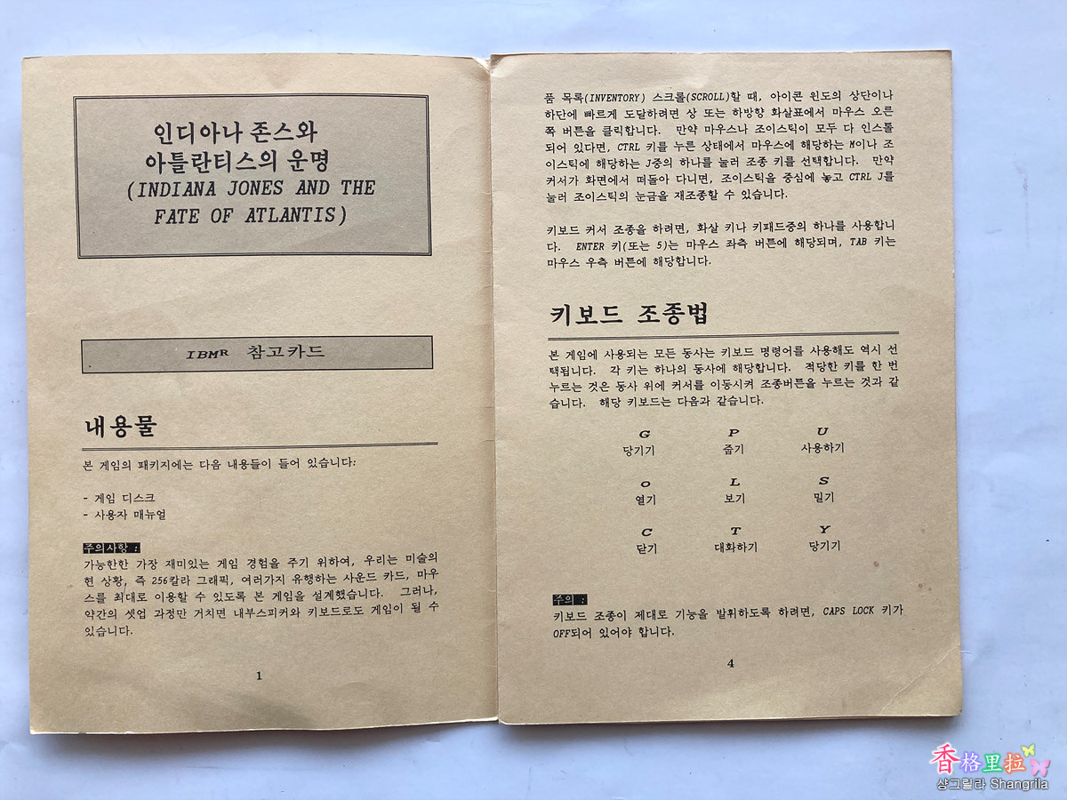 ▲인디아나 존스 게임 설명서