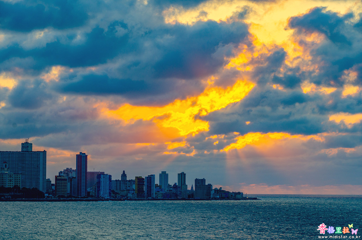 해질 무렵 쿠바의 모로성에서 바라본 아바나(Havana)