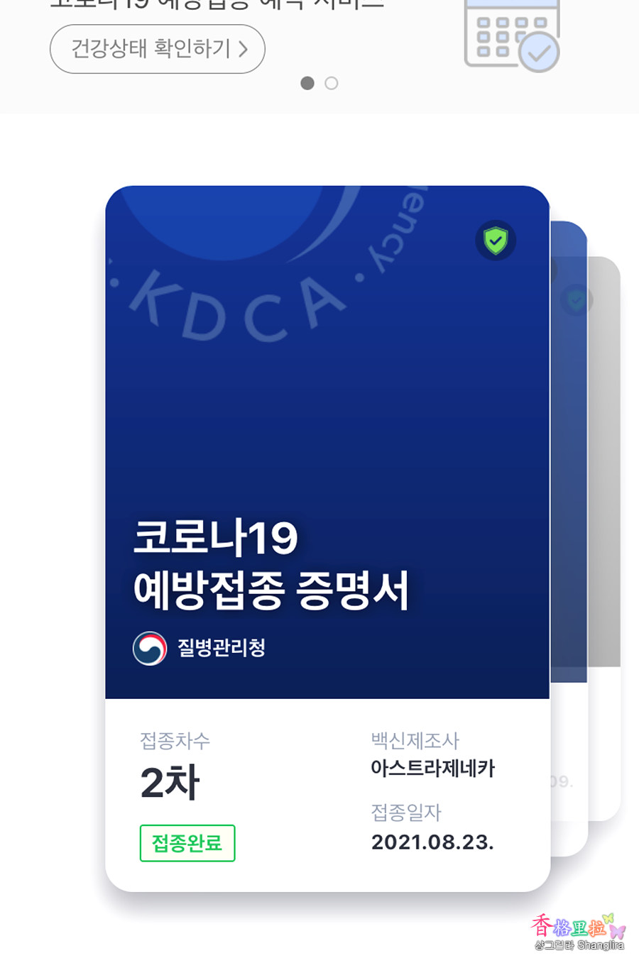 코로나19 예방접종증명서에 2차 접종완료 확인이 떴다.