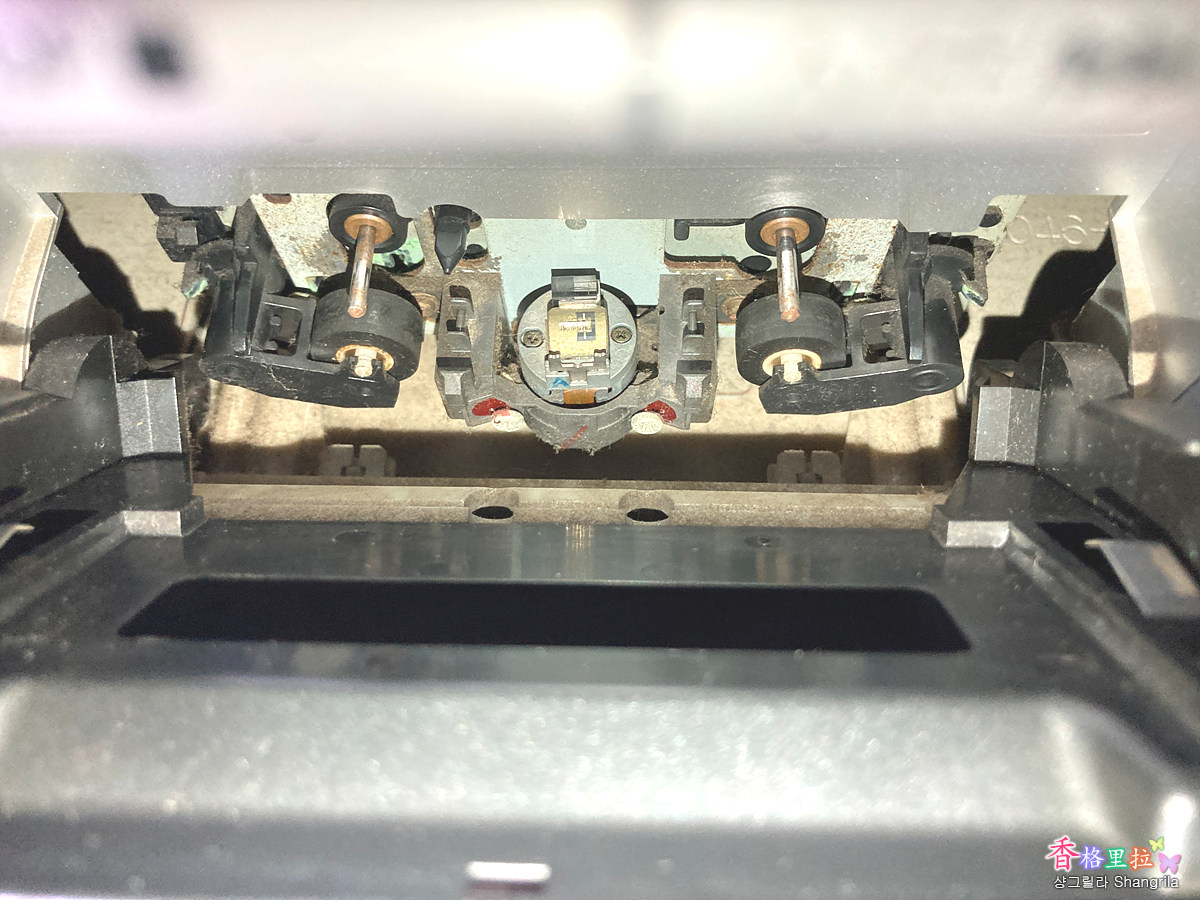 Panansonic SA-PM11 카세트데크 내부는 녹이 슬고 상태가 좀 심각하다. 핀치 롤러도 떼가 많이 끼었고 쇠봉도 녹이 슬었다.
