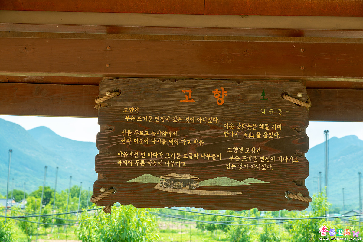 정자 안쪽에 매달린 고향이라는 시(詩)가 걸려있다.