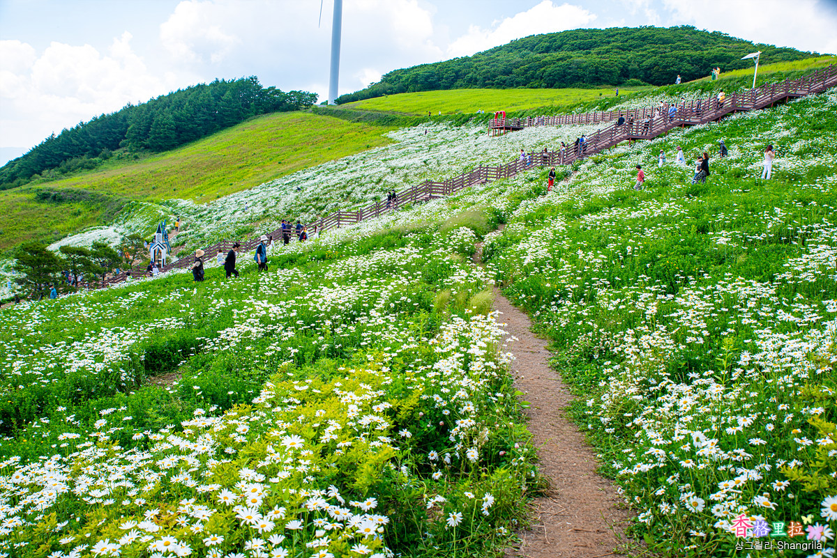 샤스타데이지(shasta daisy)가 마치 흰 눈이 온 듯 언덕을 덮었다.