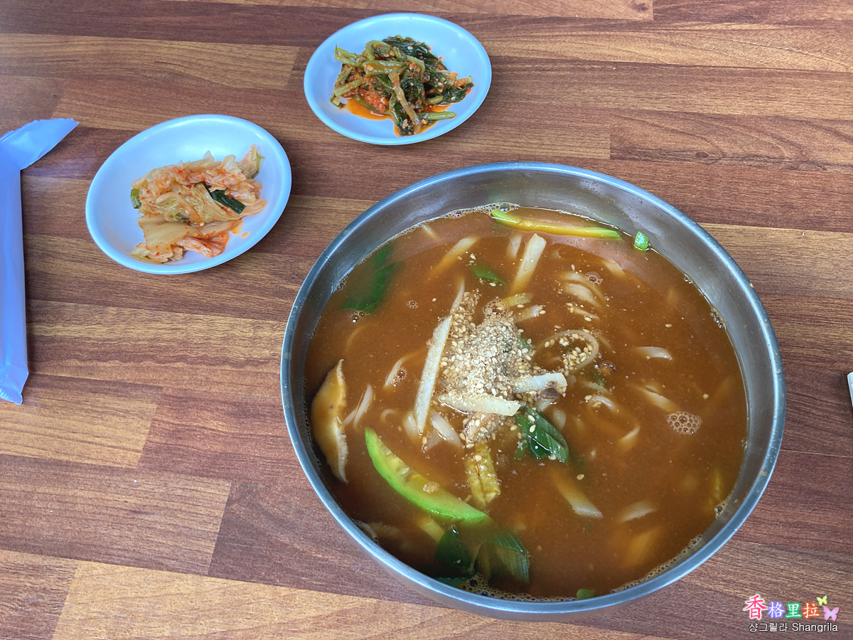 칼국수를 먹었는데 강원도 칼국수는 육수에 고추장을 풀어서 만드는 가 보다. 보통 칼국수를 먹을 때는 국물도 거의 다 먹는 편인데 면만 건져먹고 국물은 그대로 남겼다.