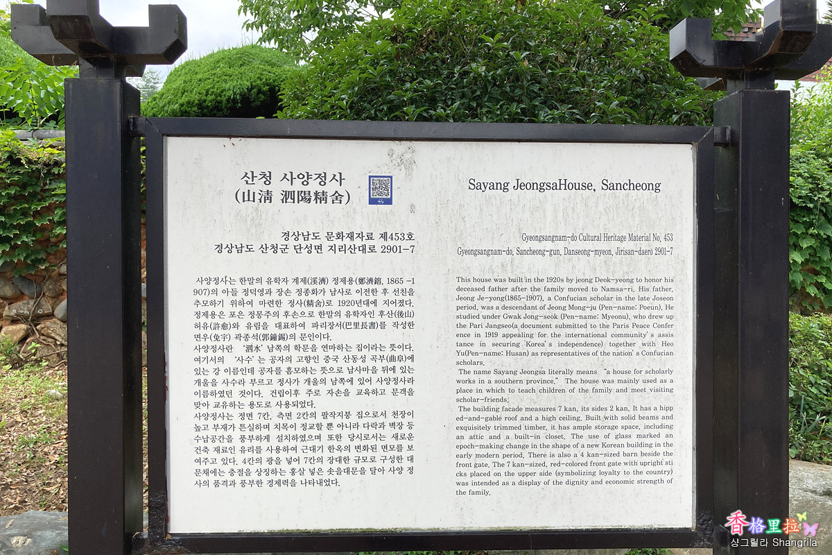 한말의 유학자 계제 정재용의 아들 정덕영과 장손 정종화가 선친을 추모하기 위해 세운 사양정사(泗陽精舍).
