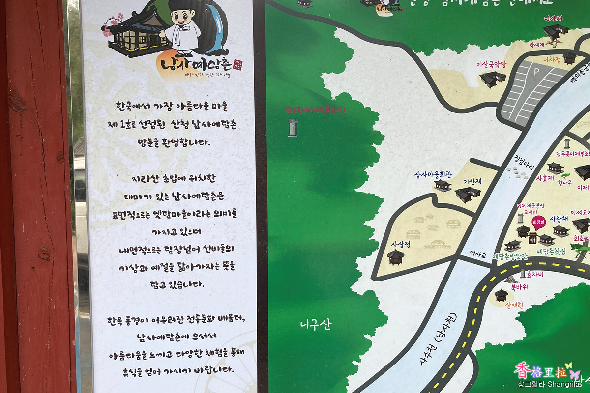예담촌 추차장에 차를 세우고 안내문을 읽어보니 한국에서 가장 아름다운 마을 제1호로 선정된 마을이라 한다.
