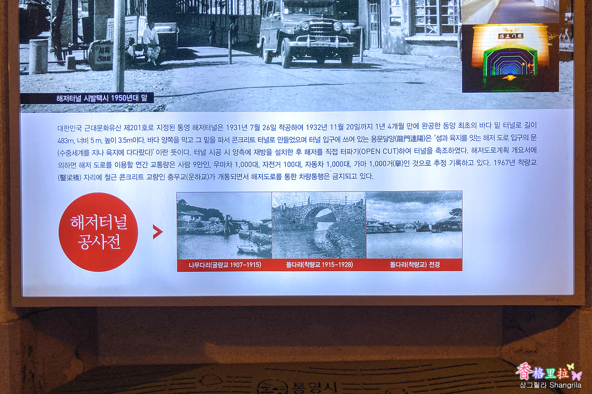 통영 해저 터널 안의 통영 안내문