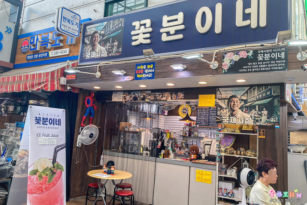 부산국제시장 꽃분이네는 간판만 영화에 나온 그대로인체 카페로 변신해 있었다.