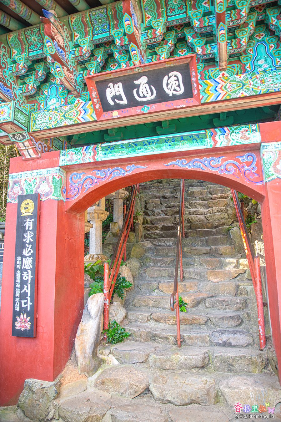 보통 산사의 절들과는 다르게 아래로 내려가야 하는 것이 바닷가에 절이 있다는 것을 짐작할 수 있다.