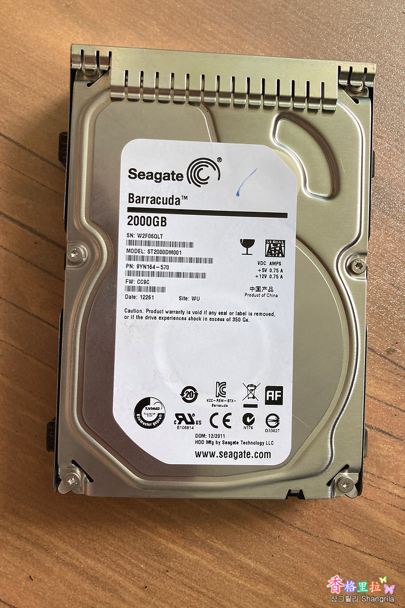 옆에 있는 씨게이트 외장하드디스크를 분해해서 2TB 하드디스크만 빼내 랙(Rack)에 장착할 일만 남았다.