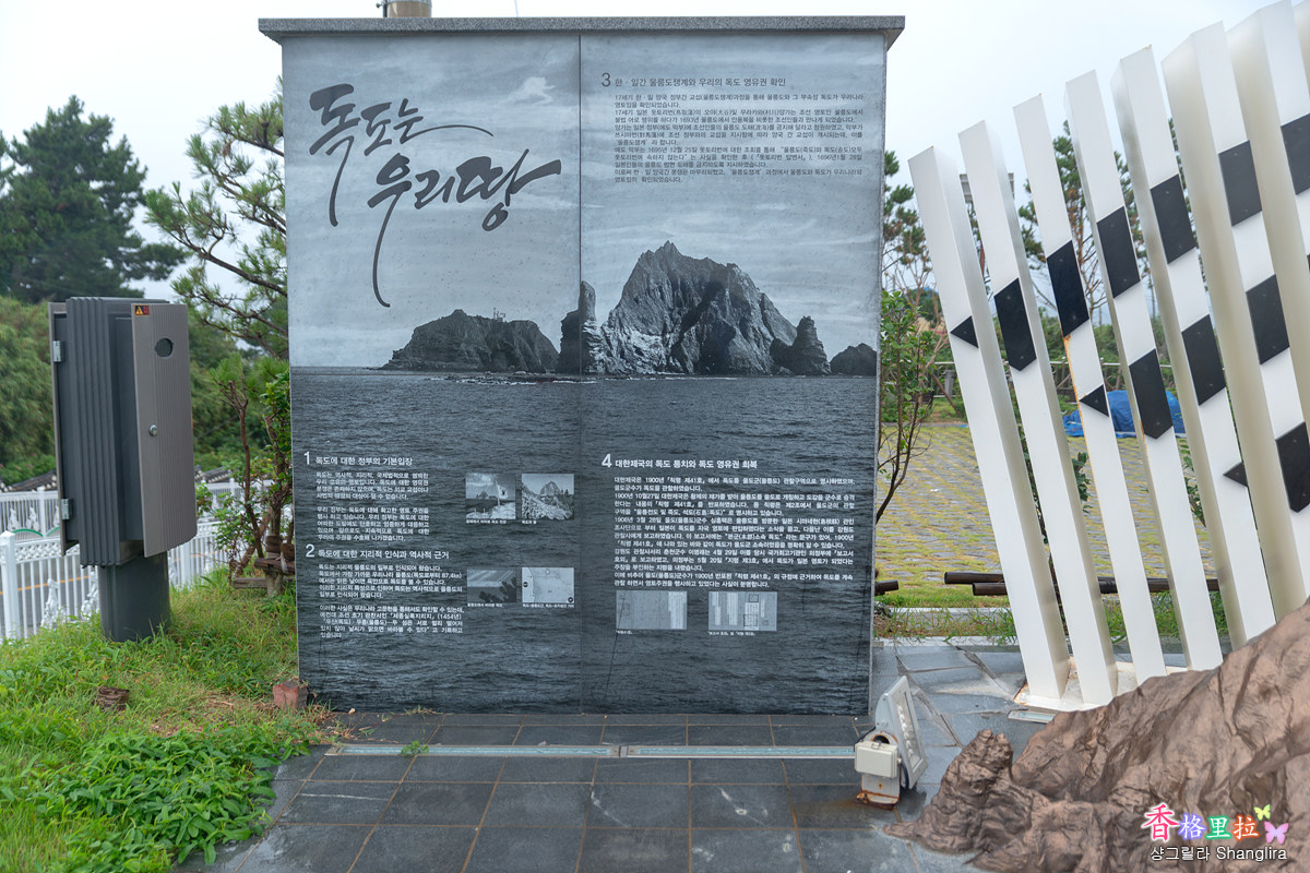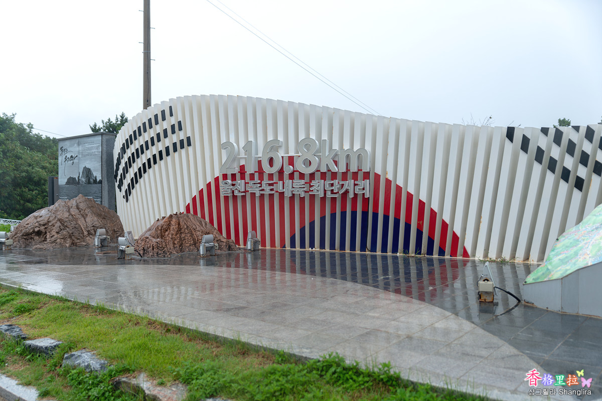 독도가 내륙 죽변에서 최단거리 216.8 Km 에 있음을 알려준다.