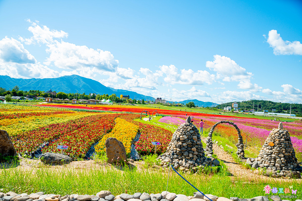 입구의 방역 검역소를 거쳐 안으로 들어가니 훤하게 펼쳐진 들판에 노랑 빨간 색의 꽃들이 눈을 사로잡는다. 홋카이도 비에이(美瑛)의 시키사이노오카(四季採の丘)와 흡사한 풍경이 펼쳐진다.