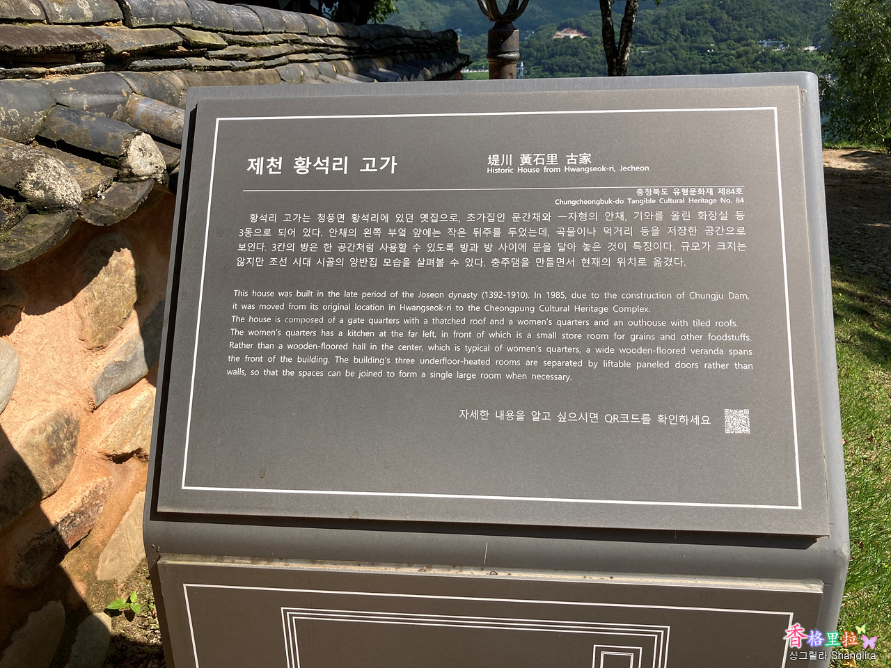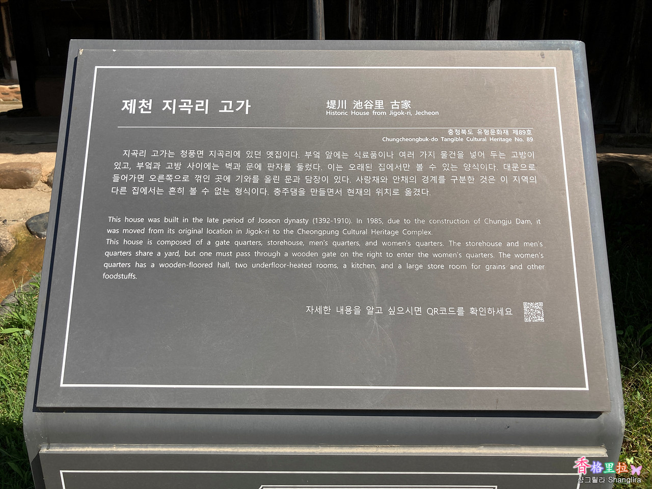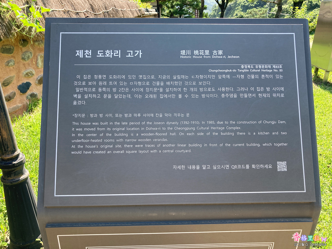 충주댐 건설로 수몰되는 지역의 오래된 가옥들을 이전해놓은 가옥이다.