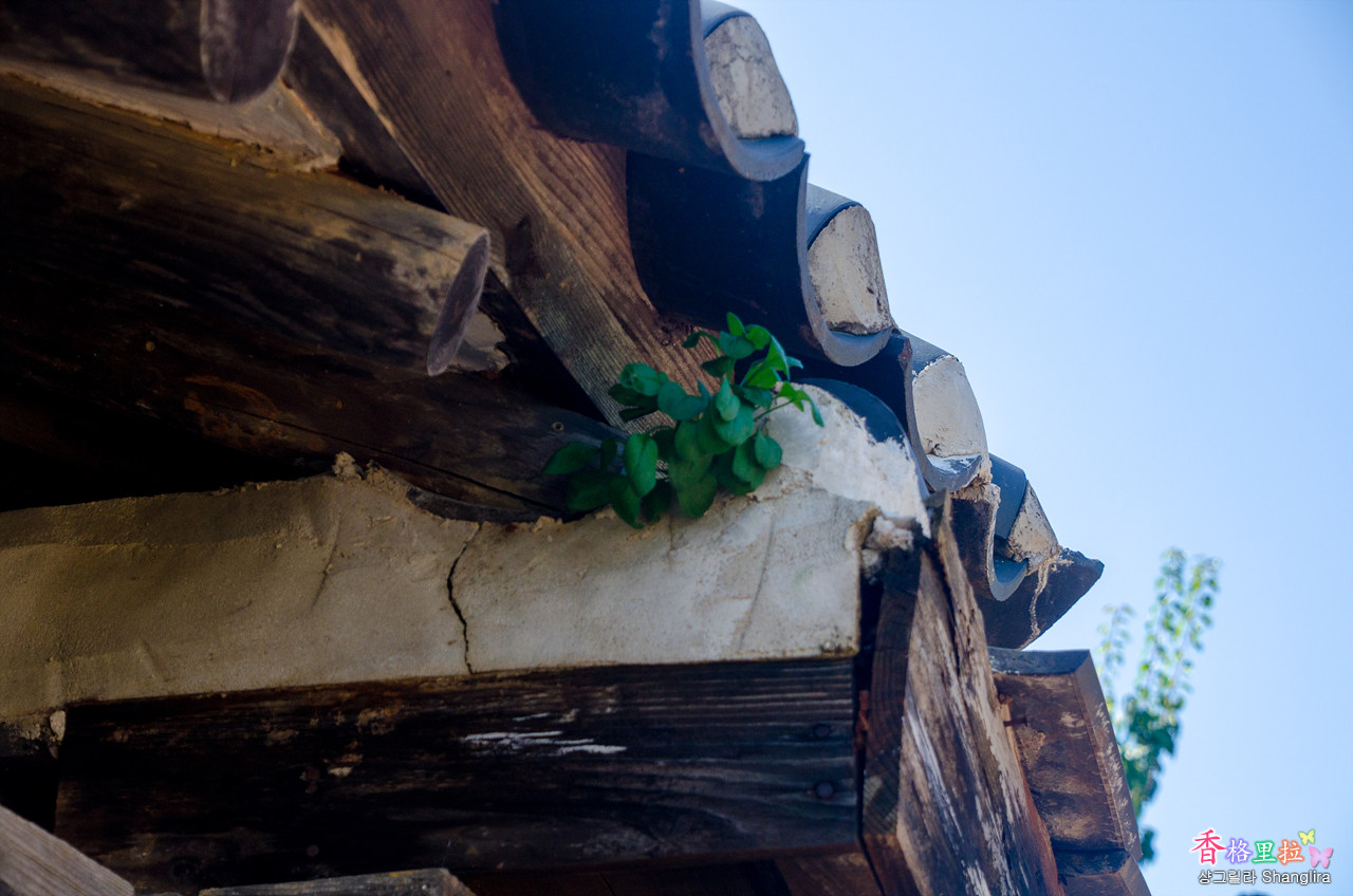 처마밑에서 끈질기게 생명을 이어나가는 풀 한포기.
