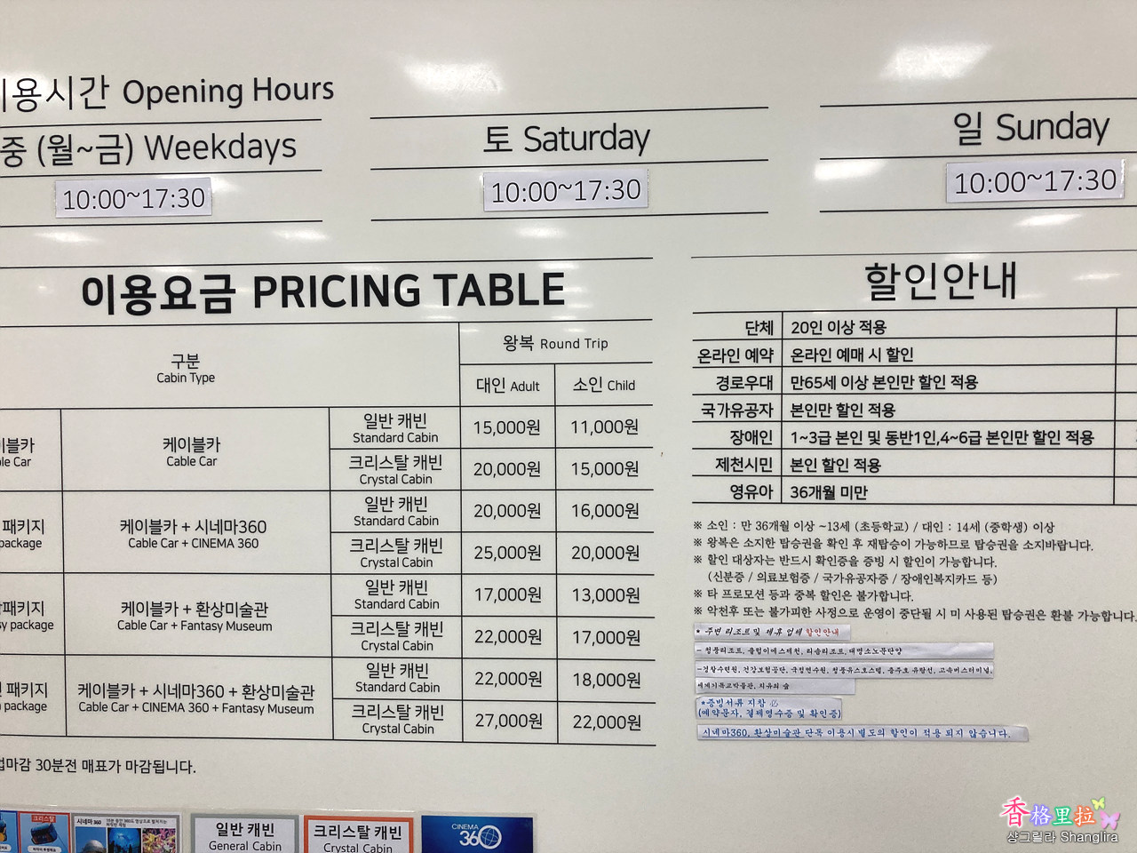 바닥이 유리로 된 크리스털 캐빈은 20,000원인데 바닥이 투명하다는 것 외에 별다른 게 없는데 5,000원이나 비싸다니...