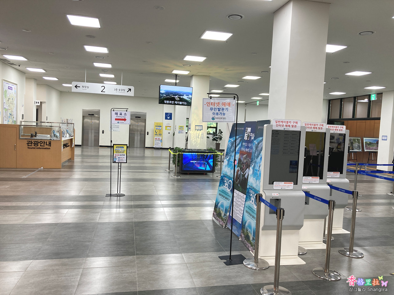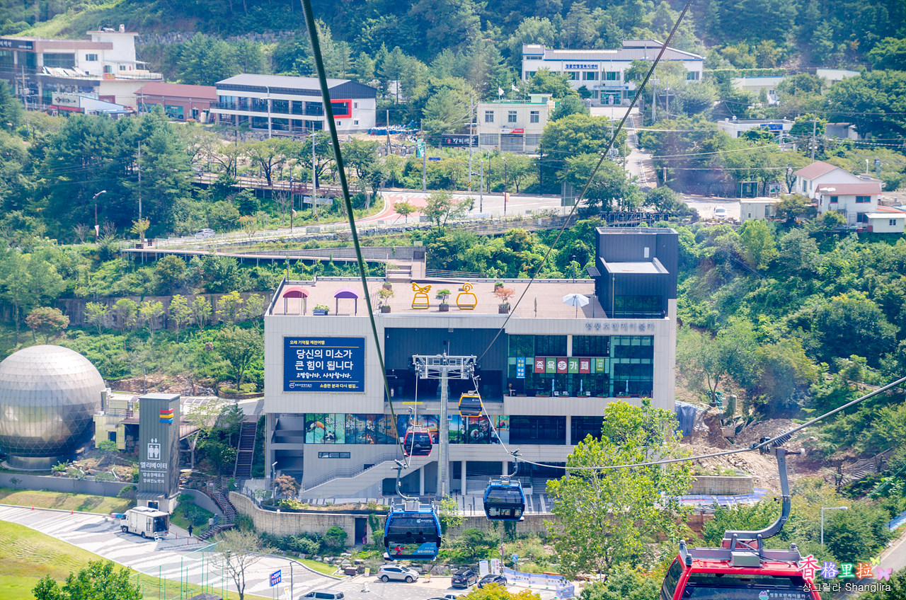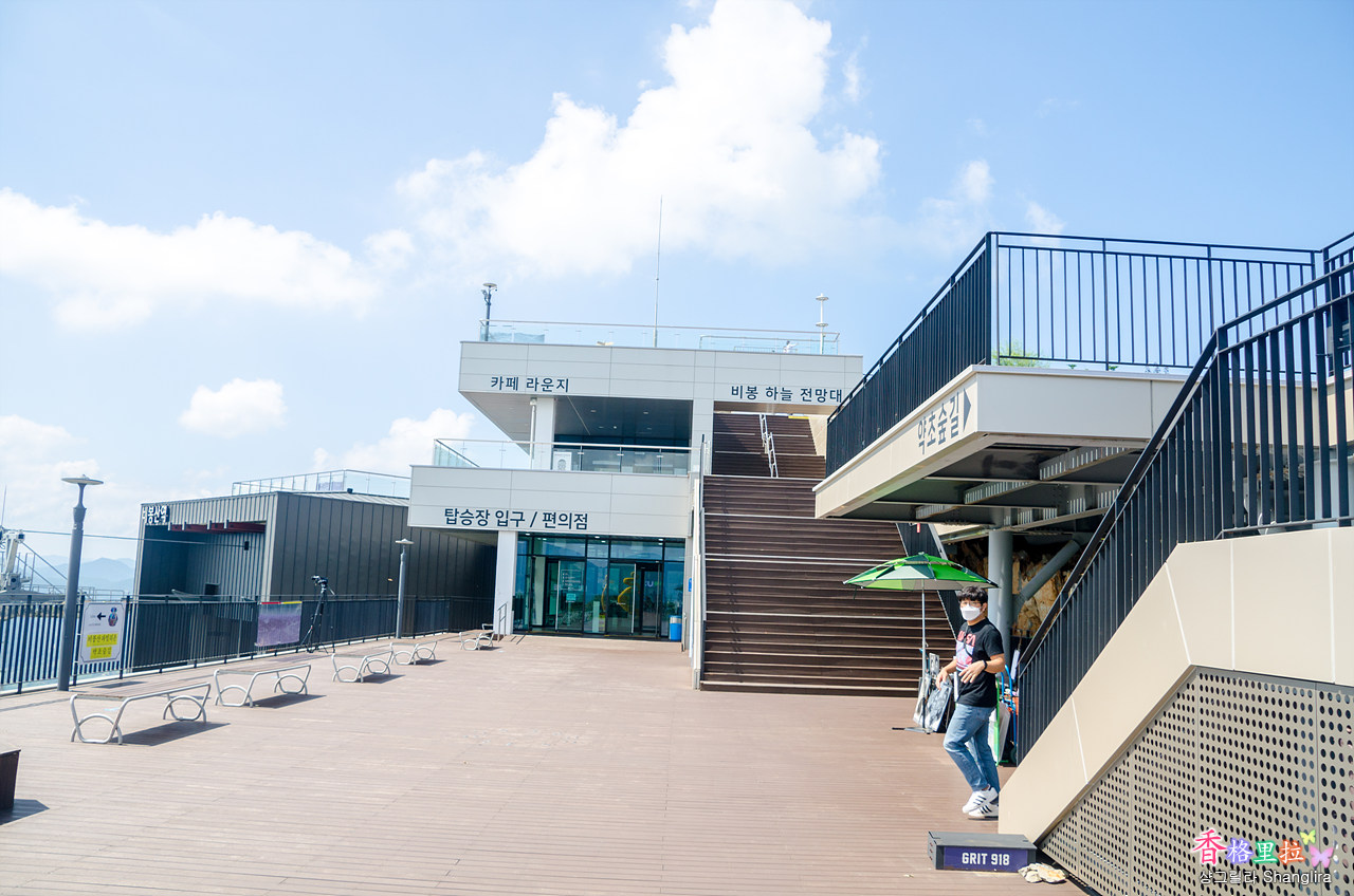 앞에 보이는 엘리베이터를 타고 올라거나 계단으로 1층 더 올라가면 케이블카 승강장이다.