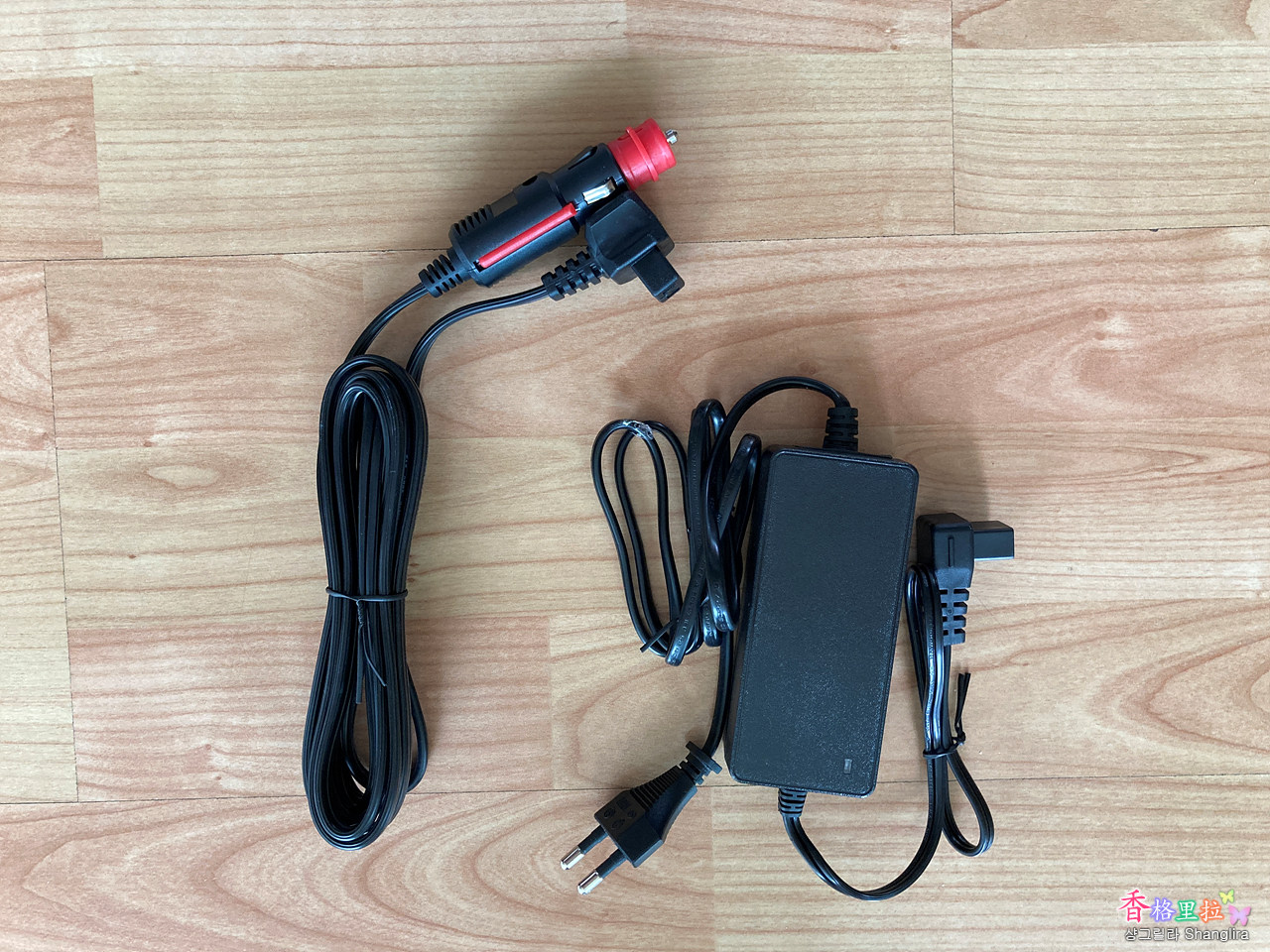▲차량용 전원코드와 가정용 전원코드와 어댑터