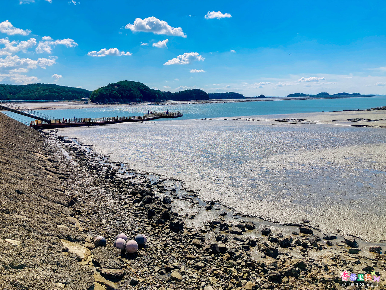 안산 대부도를 지나 인천시 옹진군 영흥면 선재대교를 건너면 선재도인데 바로 앞이 보이는 목섬(향도)에 물이 빠진 시간에 건너갈 수 있다. 뻘이 아니라 조개껍질이 부서진 모래톱이라 발이 뻘에 빠지지 않아서 손 쉽게 건널 수 있다.
