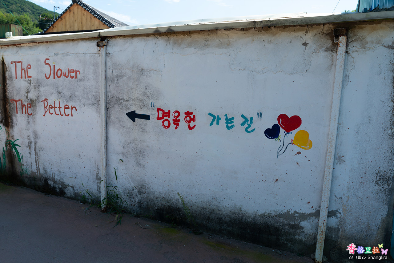 주차장에 차를 세우고 한참 동네 길을 걷는다. 가는 길엔 아기자기(?)한 글귀들이 미소 짓게 만든다.