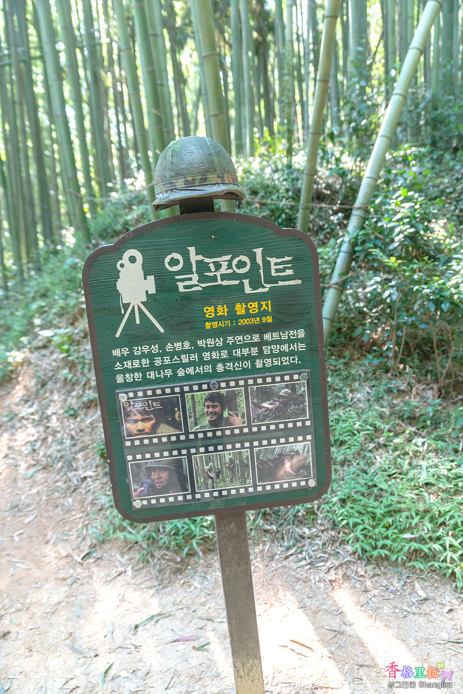 알포인트 영화 촬영지임을 알려주는 안내판이 서 있다.