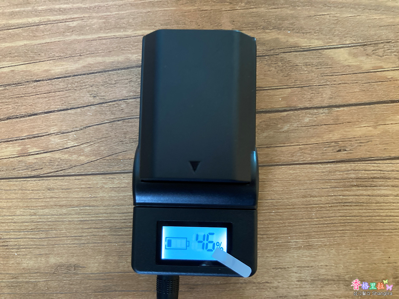충전기를 콘센트에 꽃고 충전을 하자 배터리가 46% 충전되어 있었다. 충전이 100% 완료되니 LCD창이 꺼지고 충전을 멈추었는데 3-4시간 정도 걸린 것 같다.